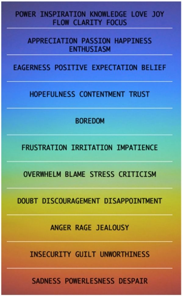 下面这张表是给人类情绪分层的图谱。表格的最顶端的情绪,能带来超敏捷超水平的发挥。而在表格顶端的情绪下,你则不仅仅会失去动力,甚至会觉得无助。