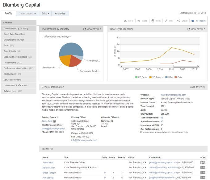 PitchBook 所提供的 VC 信息界面