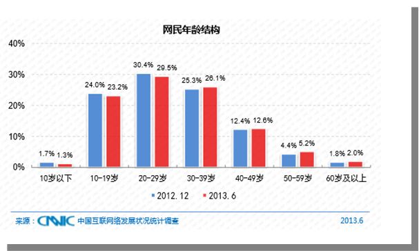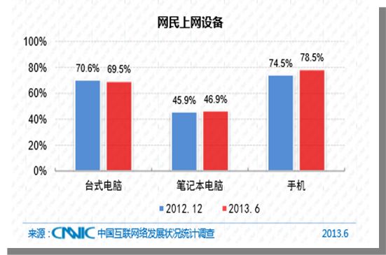 从互联网网民年龄特征,和网民上网设备这两个图标可以看出移动互联网人群偏年轻化,而且使用台式机和笔记本的人群在向手机网民转移。