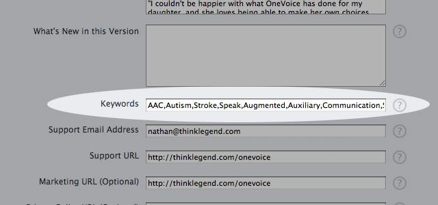 在 iTunes Connect 中,你可以使用总量不超过 100 个字符的关键词来描述你的应用,这些关键词会在 App Store 当中关联到用户的搜索。不过对于搜索结果来说,应用名称的匹配权重似乎更高一些。这也是很多应用都会使用“品牌名+附加关键词”的形式来命名的原因,