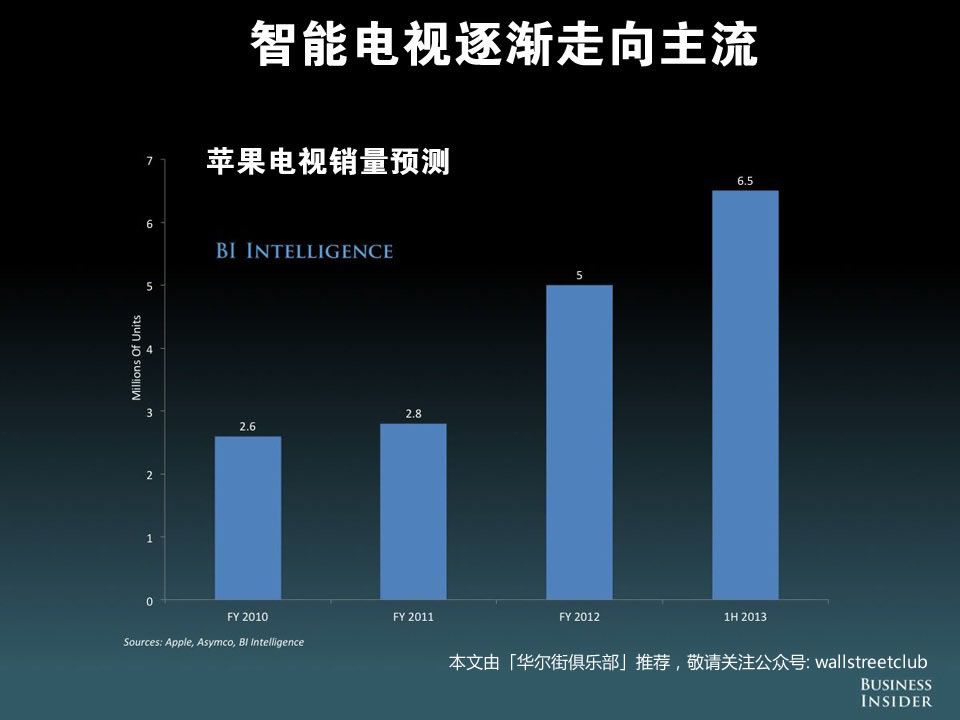 智能电视逐渐走向主流,以苹果电视为例,今年的销量预计将能达到 650 万台,比去年 500 万台的数字增长 30%。