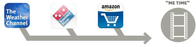 仅仅通过智能手机,就能让顾客乖乖来到商店消费,这一极具诱惑的想法总是让营销人员蠢蠢欲动。不过,手机虽然号称移动电话,却并意味着它总在路上。最新数据表明,智能手机 68% 的使用发生在人们的家里。同时,天联广告(BBDO)以及美国在线(AOL)的研究人员认为,人们使用手机最常见的目的并非 社交或者购物,而是沉浸于“个人时间”(Me Time)。