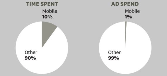 在用户所花的时间中,移动媒体占到了 10%,但是移动广告的投入仅占全部广告投入的 1%。