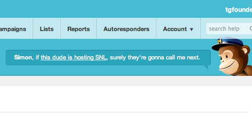 MailChimp 在情感化设计方面的一个特色之处就是他家的吉祥物,猩猩 Freddie。这家伙会在你的个人资料页打开之后为你欢呼,而且每次刷新页面之后都会冒出一些随机的笑话或链接。