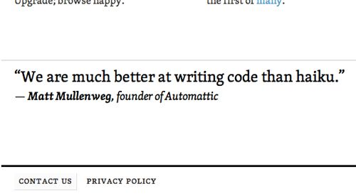 标语:Automattic 的标语之一是“比起俳句,我们更擅长写代码”。正是这种看似严肃认真的幽默感,或者说看似幽默的认真,奠定了他们的产品基调。