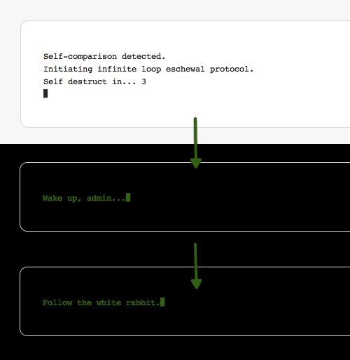 彩蛋:在 WordPress 的 self-comparison 当中有个彩蛋。为了防止相同版本的文章进行自我比较,Automattic 创建了一个小机制,无论是其中的文案还是视觉风格都模仿了黑客帝国当中的段子。这篇文章 会教你怎样在 WordPress 当中找到这个彩蛋。