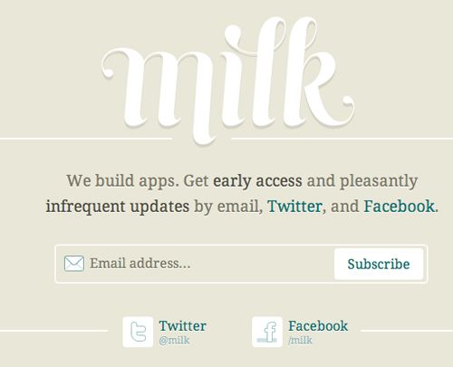 Milk 家的细节处理方式会让用户更加乐于订阅他们的新闻邮件。他们的做法与 Hunch 类似,都是在文案中明确的告诉用户新闻邮件的重要性,而且不会很频繁。