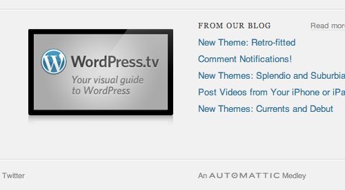 文案:在 wordpress.com 首页的页脚当中有一段每次加载页面都会发生变化的签名语,有时是“来自 Automattic 的产品”,有时变为“来自 Automattic 的乐章”。这种细节体现了他们对于自己产品的热爱。