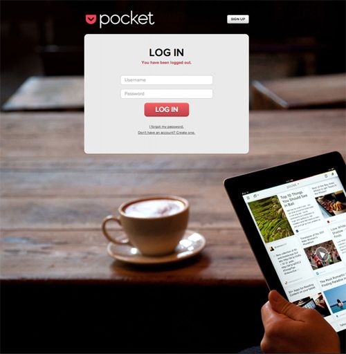 在很多时候你未必需要做的如此特别。以 Pocket 为例,他们的登录页面具有很强的“欢迎”色彩,一幅巨大的背景图片烘托出了该应用的使用场景,让用户觉得身临其境,在情绪上产生共鸣。