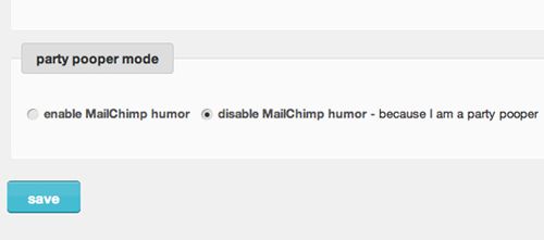 再次以 MailChimp 为例,他们提供了一种“party 扫兴模式”,那些对幽默风格不感冒的用户可以在这里禁用那些有意思的设计元素。