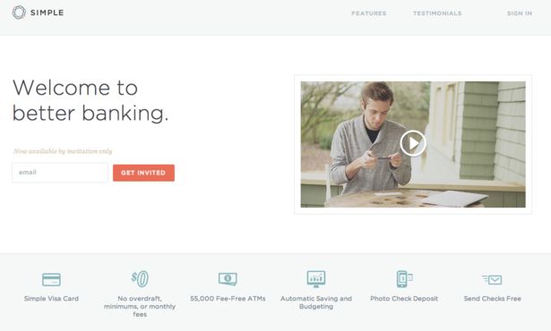研究表明,96% 的人訪問網站時首先關注視覺設計,只有 6% 注意到網站內容。第一印象可持續數年。視覺感受比使用者體驗更容易在第一時間形成。以下是 Simple 線上銀行的網站。簡潔明瞭的首頁與網站宗旨完全契合,這也是利用大幅白背景引導注意力的典例。
