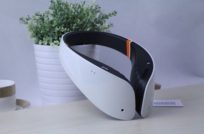 比如在 knewbi 青年汇活动中展示的艾氧空气净化器,造型非常酷似一个耳机,使用方法是将“耳机”挂在脖子上,通过内部循环净化,将新鲜空气排放在鼻口下方,从而形成一个类似隔离层的区域,从而达到净化空气的目的。