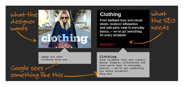 用 webfonts,CSS 和 HTML 创建所有这些元素以便蜘蛛和机器人可以爬行。我们真的希望消息,例如”免费送货”、”10% 折扣”或”出售”被搜索引擎隐藏吗?