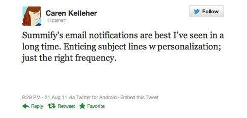 其他優化方法包括使用社交信息。例如,Summify 以卓越的精選郵件著稱。他們整合你所有的社交網站的頭條故事(LinkedIn + Twitter + Facebook),做成每日精選郵件發送給你。