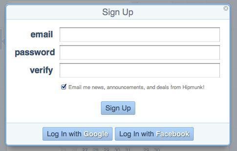 Hipmunk 在這方面也做得很好,他們在註冊對話框中提供了社交登錄選項: