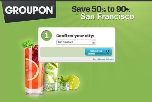 示例:Groupon 等團購網站為某些(按摩優惠、餐廳優惠、健身優惠)關鍵詞使用通用的落地頁背景。