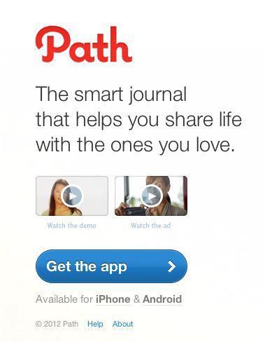 Dropbox 改版為基於視頻的落地頁是被廣泛稱道的成功案例。Path.com 為首次訪問者自動播放 iPhone 應用介紹的方式也樹立了一個好榜樣。視頻在 Path 身上是相當有用的,因為用戶普遍對越來越多的社交網絡感到疲勞,並對分享個人信息變得愈加小心。而這個視頻充分地展示出 Path 的願景——專注於更親近、更可控的朋友關係。事實上他們在主頁上提供了許多視頻: