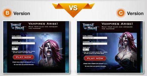 圖片同樣可以用來提高轉化率。網絡營銷的其中一個說法是「有雞就有點擊」(Chicks get clicks)(「色情有市場」的粗俗說法)。諮詢公司 ion interactive 為一家遊戲公司做了一次測試,發現下面的設計的轉化率比沒有強調巨乳的同款設計竟然高出了 35%。