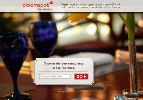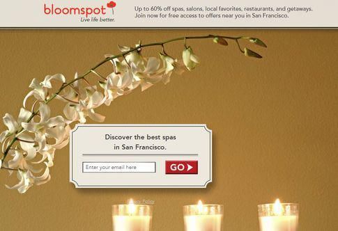 除了買下一大堆搜索關鍵詞(「SPA」、「按摩」、「晚餐」等等),在 Facebook 上對大量人群做定向營銷,並且佔據了其他許多的網絡展示位,Groupon 和其他團購網站都採用了通用的落地頁背景。這確實可以節省開發時間,但是實際上,並不會花費很長時間來建立一個通用的模板,然後根據垂直細分領域測試不同的文字、背景圖、及其他運營元素。這正是 Bloomspot 的策略。