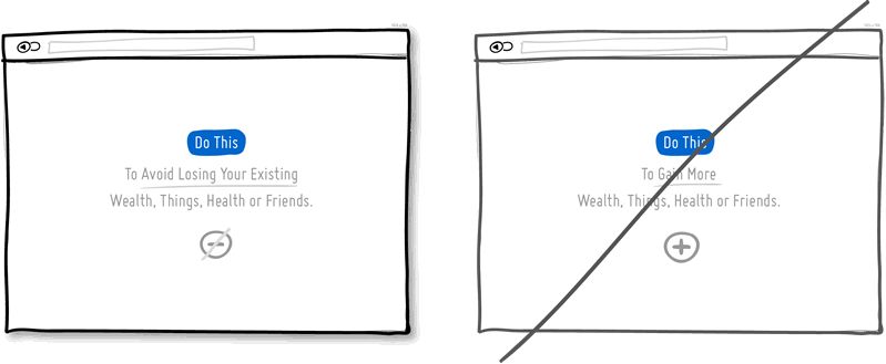 人们都是想赢怕输的。根据说服力心理学中的规则,相比于得到新的好处,我们更倾向于避免损失已有的东西。这条规则也适用于怎样向用户展示产品的价值。阐明你的产品可以帮助用户避免怎样的损失,包括健康、财富或社会地位,这种策略可能会比单纯向他们展示产品所带来的额外收益要更加有效。想想看,保险公司卖的究竟是什么?是那些在意外发生之后可以得到的“收益”,还是一种对既有事物的保障感?