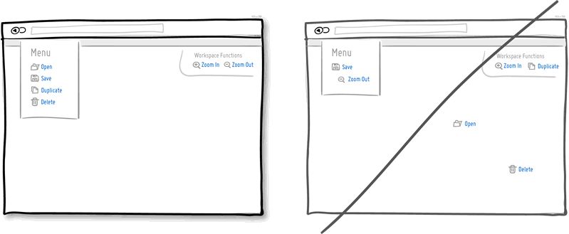 这是提升可用性的基本方法之一。我们都知道,刀和叉,打开和保存,这些东西应该被放的更近一些。具有关联性的要素在位置上应该更紧密,以体现逻辑上的相关性,降低界面整体的认知负荷。在极其有限的会话时间内再浪费时间来寻找内容和功能,这对于用户来说可不是有意思的事。