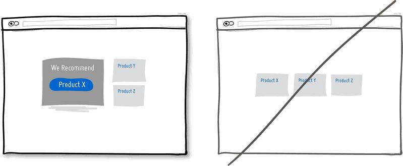 在展示多个产品选项时,可以尝试重点推荐其中的一种,因为很多用户就是需要一点推动。我相信有相关的心理学研究可以证明,选项越多,人们做选择的难度就越高,某个选项被选中的概率就越低。推荐多个产品中的一种,突出展示其相关信息,使其权重高于其他几个选项,有用。
