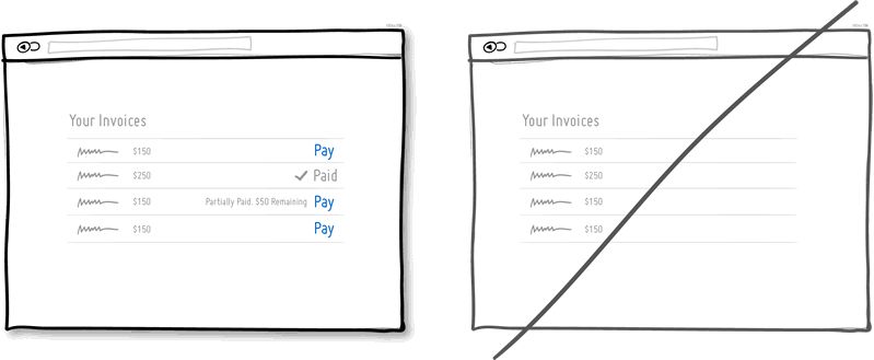 尝试在内容条目中呈现状态信息。例如,邮件列表中可以展示已读或未读,发票列表中可以展示已支付或未支付等等。让用户了解内容条目所处的特定状态,这也是一种信息反馈方式,使用户知道他们的行为是否产生了正确的结果,或是让他们了解接下来需要执行怎样的操作。