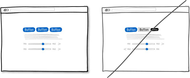 我们会在无意当中创造出多个功能类似或相同的元素,不奇怪,这是基本的熵原理——事物总是在向混乱的方向发展。留意那些名称不同但功能重复的元素,这会增加用户的认知负荷,使他们产生疲劳感。通常,UI 的复杂度越高,用户的学习曲线就越陡峭。考虑不定期的对产品 UI 进行评估,对那些功能类似的元素进行整合。