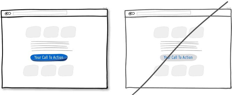 让你的 Call to Action 相比于周围的元素来说更加突出,容易辨识。你可以使用一系列的方法很轻松的提升其对比度:通过色调,你能在元素之间建立明暗对比;通过深度,你能在特定的元素与其余内容之间建立层次 (例如使用阴影和渐变效果)。此外,你还可以从色盘中挑选互补色,用在不同的元素当中。综合使用这些方法,鲜明的对比就可以在 Call to Action 与其他内容之间建立起来了。