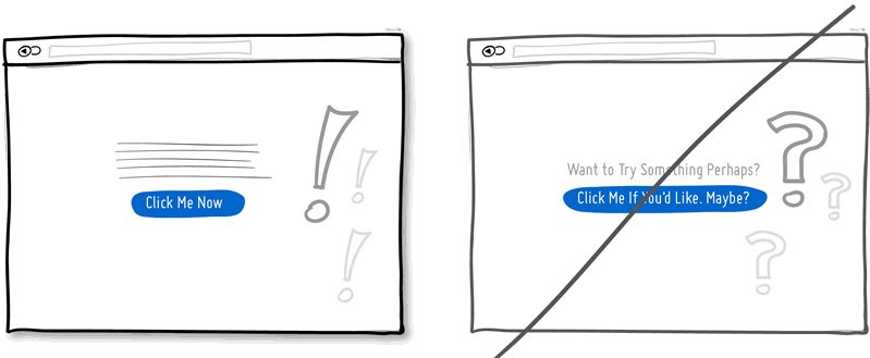 你可以用颤抖的声音没有把握的传递信息,也可以自信满满的把话讲出来。如果你喜欢以问号结束信息的内容,并且用到“也许”、“可能”、“有兴趣吗?”、“想要 xxxx 吗?”这样的辞藻,那么你可以考虑一下增强自己的信心和权威性了。要提升转化率,你有不少空间可以直截了当的阐述内容,告诉人们应该做些什么。