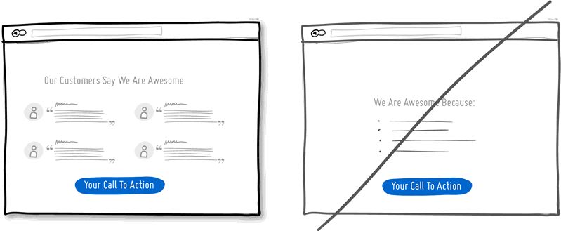 社会认同是另一种可以直接提升转化率的说服策略。他人对你产品的谈论和赞许,将会使 Call to Action 在用户看来更具吸引力。试着使用一些知名机构或媒体颁发的鉴定证书,或展示相关数据,这些都是很好的社会认同证明。