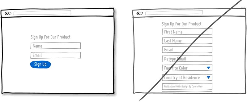 人类生来就会对劳动密集型任务产生抵触心理,而填写表单就是这样一种任务。你每向用户提供一个表单字段,用户放弃填写转身离开的风险就会高一点点。每个人打字的速度是不同的,而目前来说在移动设备上打字仍然是让人相当厌恶的事情。问问自己每个表单字段都是真正必要的吗?如果你确实有很多非必填的字段需要提供给用户来获取相关信息,也可以考虑将它们移至单独的页面或任务状态当中。要把表单搞大是很容易的,但无益于提升转化率。