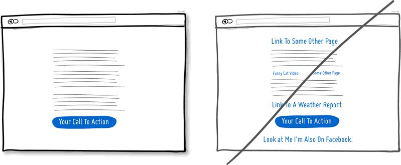 我们时常会创建出那种从左到右从上到下到处都是链接的页面,并希望这样可以满足多数用户的需求。不过如果你要打造的是叙事类的页面,并会在内容底部放置重要的 Call to Action,那么建议你考虑更简洁的页面形式。要记住,任何位于主 Call to Action 之上的链接都会带来一定的风险,有可能将用户从你最希望他们做的事情当中带离。留意页面上链接的数量;在发现型页面 (链接较多,相关内容入口较多) 与管道型页面 (链接较少,目标集中,转化率高) 这两类风格之间找到微妙的平衡,增大用户顺利抵达主 Call to Action 的几率。