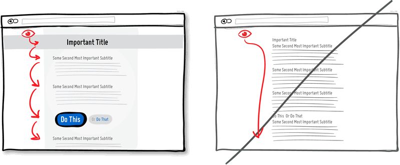 好的视觉层次与节奏可以帮你有效的区分内容的优先级。视觉层次是通过对齐方式、距离、配色、缩进、字号、元素大小、边距等要素体现出来的。当你正确使用这些视觉设计要素时,它们能有效的提升内容的可读性,为人们的注意力提供方向,让他们知道应该在哪里停下并认真阅读。良好的视觉层次可以为页面带来必要的阻力,让人们从上到下更有节奏、更有关注要点的浏览页面,而不是漫无目的的迅速扫视。你希望用户通过高速公路尽快到达终点 (浏览到页面底部),还是走一条景观路线,看到并记住沿途的有趣事物?