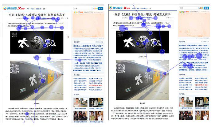图 7:自由浏览网页的眼动轨迹和在网页上查找特定信息的眼动轨迹