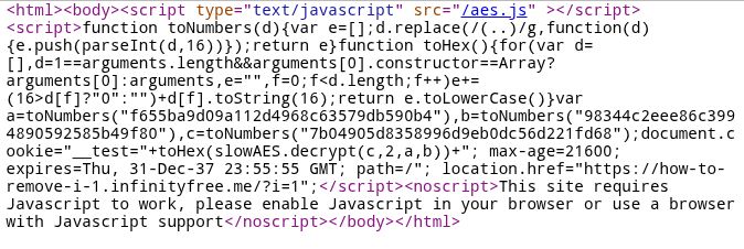 部署在这些主机上的网站,在浏览器首次访问时链接都会跳转到 中转页面(如下图),中转页面 是经过加密后的页面,判断是否存在相应的 cookies,如果不存在就跳转到中转页面(原链接 +?i=1)。
