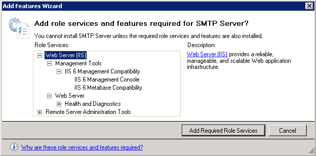要从 IIS 使用和设置 SMTP 服务器服务,请确保安装了所需的功能和角色服务。