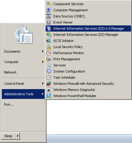 您可以使用“开始”->“管理工具”->“Internet Information Services 6.0”选项启动它,或使用“服务器管理”选项。