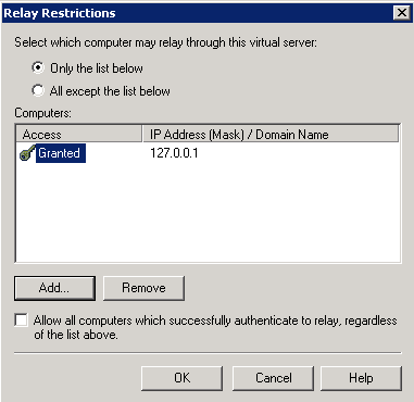 - 应仅允许来自本地服务器 (localhost) 的中继(使用邮件客户端连接无须设置此项)